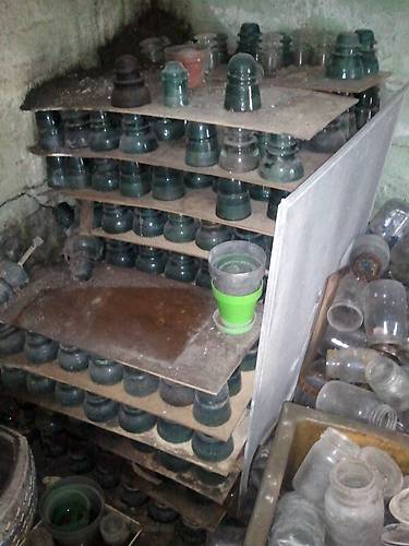 One of my friends who goes to a lot of farm auctions etc. and keeps his eyes out for insulators for me, recently opened up a storm cellar he is hired to remove due to safety reasons, it has started to cave in. When he went inside, this is part of what he found. I went to look at it last weekend and took the picture. He is going to hold off filling it in until I can get back up to remove the insulators. Looks like stuff off of an old RR signal line but I'm hoping there might be some old rural telephone stuff in the pile since this is in the area "Amber 8s" are known to come from. (Sorry – that's all I am going to tell you for now!) |