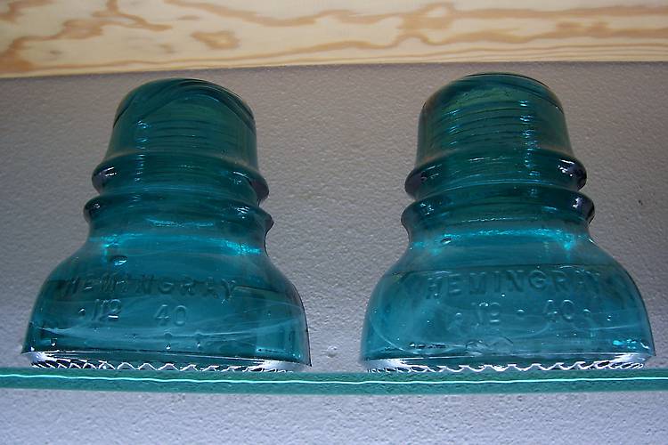 My wife and I decided to go on a " Hunt " after taking care of some business yesterday in western Iowa and she wanted to walk this mile of old poles along the " Ole Rock " she had scoped out awhile back. I dropped her off at one crossing, I and the kid, " Our Dog " drove to the next crossing. I was picked to entertain him while she was on the " Hunt ". Guess what ! Here are a couple " Gems " she found. Two " Milky " CD 152 Hemingray No.40's Varitions. Left one is a Dot, No.40 and the right one is a Dot, No., Dot, 40, Dot. Sound familiar on finding " Milky " No.40's. |