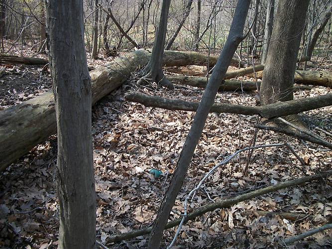 I saw this near the old New York Central tracks where I found quite a few of these back in the 1970's but this is the first one I've found in the field since then. I saw that unmistakable color and knew right away what it was.