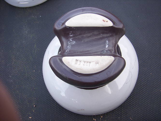 another dump piece. This one has several markings. The '"top rest" is marked 02 SET 10. an outline of an insulator with the word GAMMA inside the outline and a lightning bolt thru the word Gamma beside that marking the letters ANSI and the numbers 55-3 . Underneath that the word Columbia and the date 1998 Below that the number 250 . I tried to take pictures of the marking but they just won't show up. |