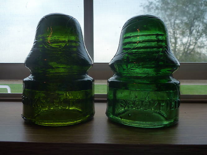 Found the nice olive 133 on a railroad last year. Saw the (yellow?) green one on eBay. It was all sooted up but you could tell it was dark green; thought maybe it was the same color and I could use it for a trader. Got it for about $5, cleaned it up and found it was lighter, but still pretty. I think they look nice side-by-side, so I guess I'll keep it :P |