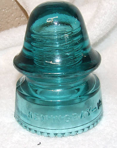 As I was stopping at a bunch of different stores this past Saturday, I ran across this little gem. I picked it up and my wife and I knew it was not your normal Hemingray 19. The insulator is pure BLUE. NO fancy extra's, just pure blue. Once I got home, I then realized, it is an unlisted color. The insulator is a Hemingray 19 CD 162[090] with round drip points. It is a listed color for sharp drips but not round. Also see my other color find for the [090]. |