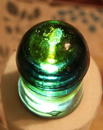 The tealy one when underlit or held to the sun reveals TONS of amber swirling, and a couple of tiny milk strings. An insulator that was probably removed over 40 years ago and left in a barn, covered in grime, finally gets discovered. This is why I love collecting! |