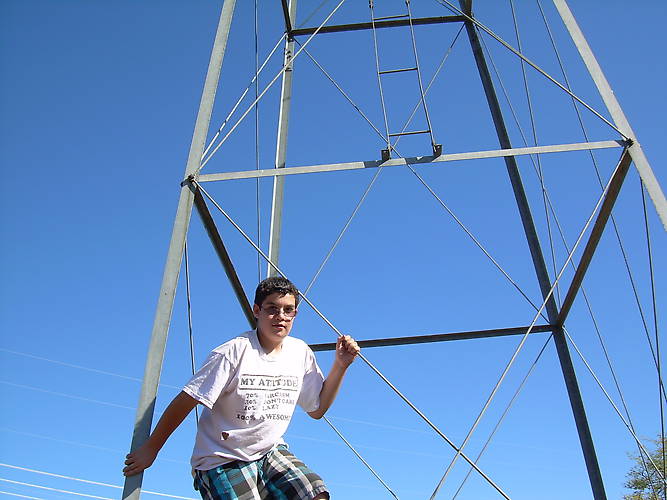 My Son Julian on one of the towers, Finding them was a big surprise!