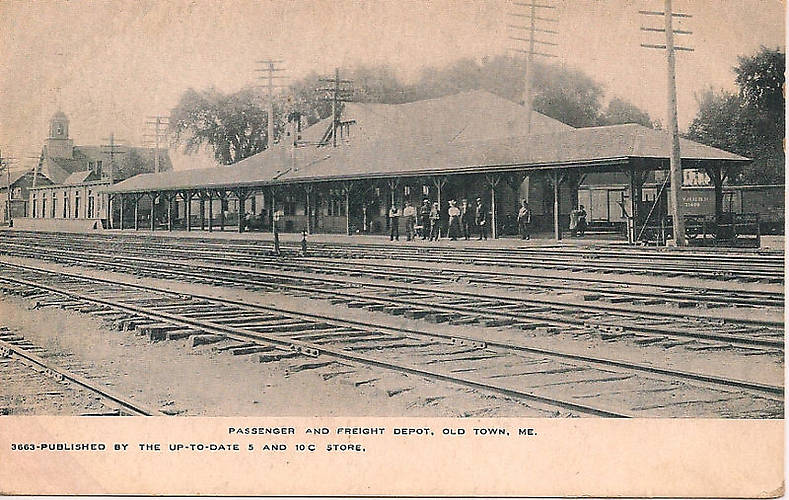 Old Town, ME 1907, Railroad Station, Early Telegraph Poles