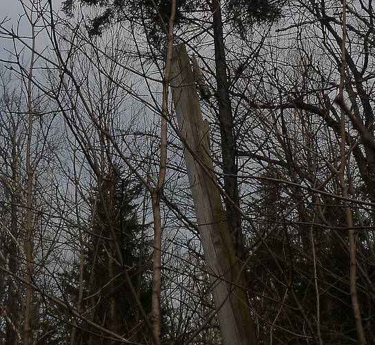 Here's a nice olive green WT CD 107 that is on an old telephone line that stretched between the Lower Meadow road and Marcy Dam in the High Peaks region of the Adirondack mountains. There's a small 4x4 road that travels 2.8 or so miles to the dam and these simple 2-4 sidepin poles followed most of the way. Only a few had glass or remnants of it, this was one of them. A couple others held clear CD 115s, not sure what brand. This pole is leaning over the road and very loose in the ground, so it's my prediction that the park rangers will remove it as soon as they are aware. |