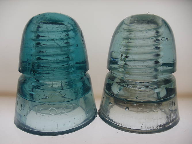 5 CD 145 H.G.CO. PETTICOAT's . the first 1 is a nice blue with a nice milk swirl through it . the 2'nd is a light blue tint withsome amber.