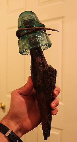 Here I placed the HGCo 162 back on it's cleaned sidepin. Although this insulator has a 1/2 inch chip above the wiregroove and a pinky sided flake through 4 of the drips, it's got lots of character with it's original hardware.