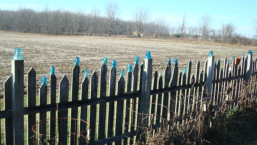 Driving back to go out hunting after checking in my dad's doe we found this house that had 2 gardens and both were fenced in with insulators lining the fence. Most of the pieces were more common like Hemingray 42's, 40's, 19's, etc.... But there was 1 piece that caught my attention. You can see it on the far right of this picture. A CD 242 Hemingray No 66 in Hemingray blue. |