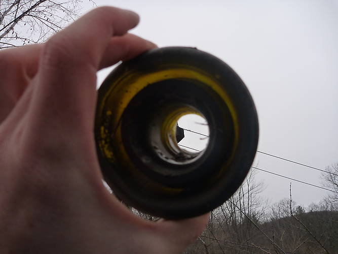 Another heartbreaker to found broken. Thought this sucker was a porcelain at first until I noticed a hint of green in the last bit of sunlight. Never seen a 152 this dark amber.