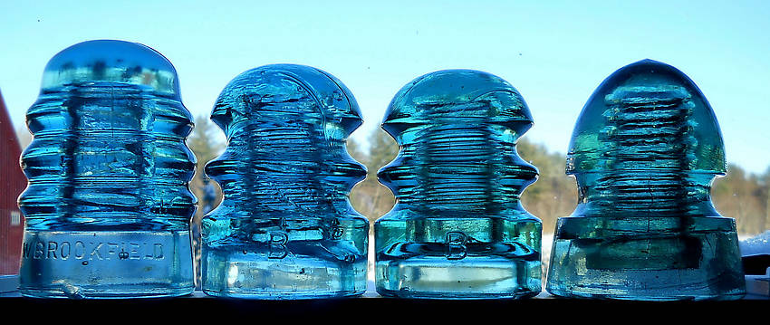 Found these four aqua insulators in an antique store in Essex, Massachusetts on Boxing Day. At $9.00 each, it was a pretty good day after Christmas, Christmas present to myself. The CD 116, and one of the CD 116.5 insulators are essentially mint. The other two had minor problems. |