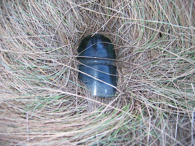 I found this one some 7 years ago. I had to return with a shovel the next day since it was frozen in the ground. The strange thing was that this GTP (CNR) piece was on a Canadian Pacific Line. The GTP line was not far away, so I can only assume that the contractor,,, didn't care. After all, an insulator is,,, an insulator. |