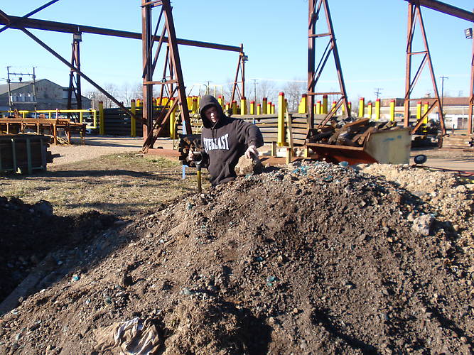 seen 6 mounds of dirt just waiting to be gone thru. Here my son deals with a large rock.