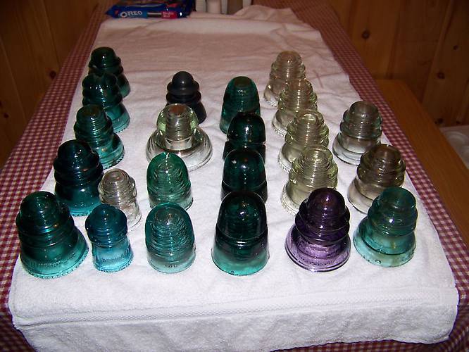A weekend find over our very successful summer. we hiked an old railroad where the dead poles still stood and still had some jewels on them. we found a lot of great insulators on the track and then we hit up a few antique stores along the way. it was a great weekend and we came out with some nice finds! |