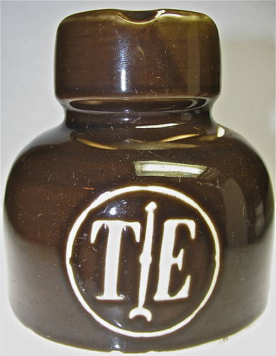 Here's a very early porcelain insulator made with the bold embossed TE (short for Telegrafo del Estado) and arrow to designate the official State Telegraph line. The arrow is associated with early turn of the century military telegraph lines. Insulator also has unusual notches- two opposite the wire groove on the crown and two on the lower wire ridge likely designed to improve grip of the tie-wire. This example was recovered in Chile but was probably made as a special order export item from England. Thanks! |