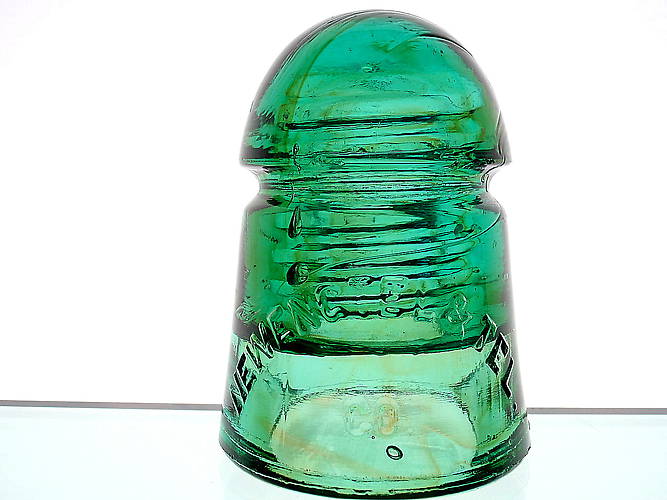 Here is a insulator you never see at all. Awesome amber swirls throughout this CD 104 NEW ENG TEL & TEL. CO. with a 44 embossed on the dome top. Big bubble in the rear skirt adds more character. Three needle point ticks, two micro 1/16" wire ridge nicks and a tiny open bubble onthe upper wire ridge edge are the only flaws!! Looks even better in person! $ 85.00 includes shipping. |