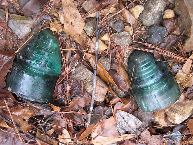 After I found the two broken Blobtop's I spotted two insulators down in a dry creek bed. I couldn't believe both were CD 133.4's and one was in good condition!