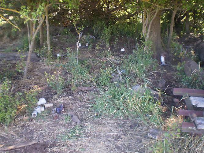 A little insulator dig on a relative's farm in rural NSW, Australia. I uncovered about 80 glass insulators (CD 121, 422, 423 & 430) and about 100+ porcelain, as well as some pins and brackets. Despite digging under a low pine tree, full of mozzies, it was fun! |