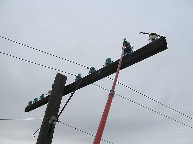 Here's my insulator grabber "liberating" a nice hemi-blue Hemingray-21 CD 145. Turns out that this piece was an EIN [100]! A pretty nice find, though not too highly valued in the price guide.
