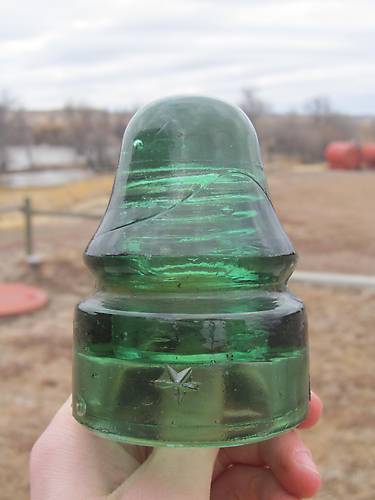 Here's my favourite piece from this trip! It was all worth it just to find this little CD 133! I still feel kinda bad for having to pull the pole down, but this was worth it. Note: It looks green aqua in this photo. I'll have to 'tinker' with the settings on my camera and repost a photo with the true colour. |