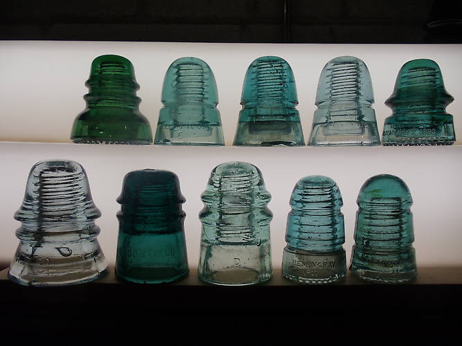 Saturdays finds. 1 antique store finds. Nice green Hemingray 40, 3 nice petticoat beehives, Hemingray signal with a large bubble, nice CD 151 H.G. CO., odd color Brookfield toll, nice light American Union, nice pair of Hemingray 11's
