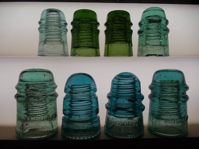 Sundays finds. Diamond/ Diamond toll, 2 nice yellow green Brookfield tolls, nice American Union. CD & P Tel toll, nice Hemingray 11, Hemingray 4, and Am Tel toll with some amber.