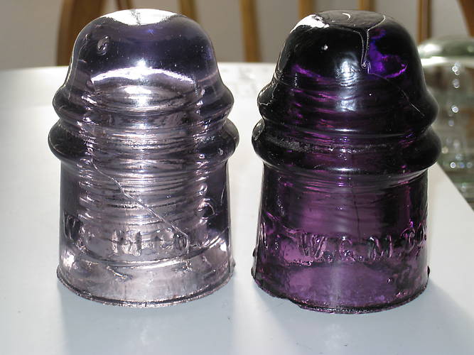 Great, inexpensive Denver color. Lilac piece has just a shallow 1/8 by 1/4 base flake at the back and a tiny surface tick or two. $22. The dark one has a couple shallow, very narrow base flakes and a lower wire ridgechip or bruise, no glass missing at the backbut is pretty decent for just $15. Please add shipping and will combine. |