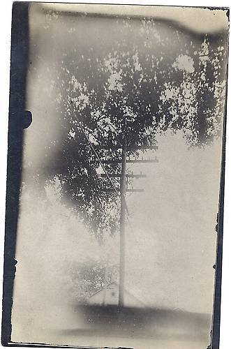 The back side says ... Rear of Pultney Apts in Geneva, NY Sam Fish electrocuted placed feet on 4th arm 110v AC sat on 3rd arm pin 4 2300v wires 7 or 8 under his left arm pit on 2nd arm Knubs McCale used jack strap [to lower him] & never climbed again Pres Middletons brother cut wires with a hand axe at next pole. Several men sat on him to let the electricy run out. Mob of people wouldnt let me or Ron Hopkins use artifical [resperation?] sued EG&EL Co 50,000 sued Federal Tel 50,000 got 800 total |