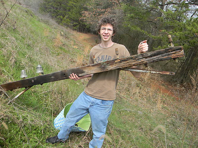 This arm was 'half raided' of glass. There are two glass ones and three empty pins were the crew took some. It didn't look like any insulator hunters came by or it would be all gone.