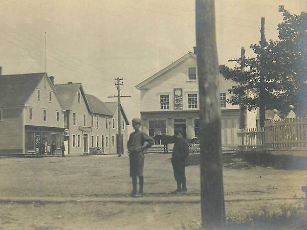 Electric distribution lines along the top, shorter crossarms with phone circuits on the longer arms beneath.