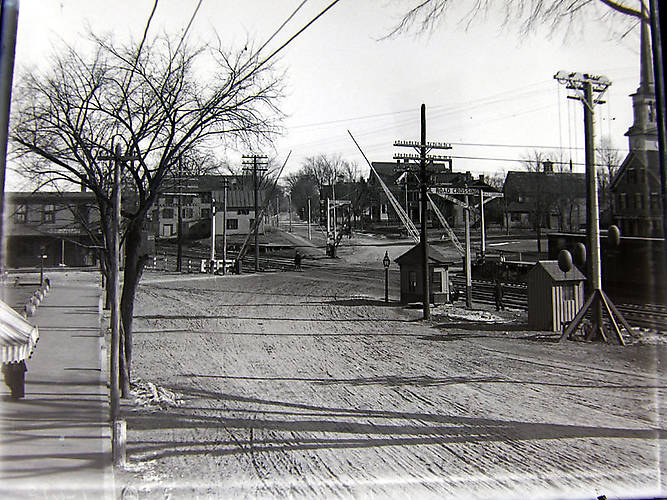 Not only are there some neat open wire telegraph lines seen here, there are some cool counterweights for the railroad crossing (as shown on the far right). This is something you do not commonly see in vintage RR photos.