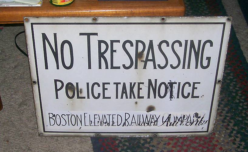 Yesterday I had the chance to buy seven signs from the Boston Elevated Railway. I ended up buying them all, but this one is my favorite. You can even see where they painted over Boston Elevated Railway to make it Metropolitan Transit Authority!