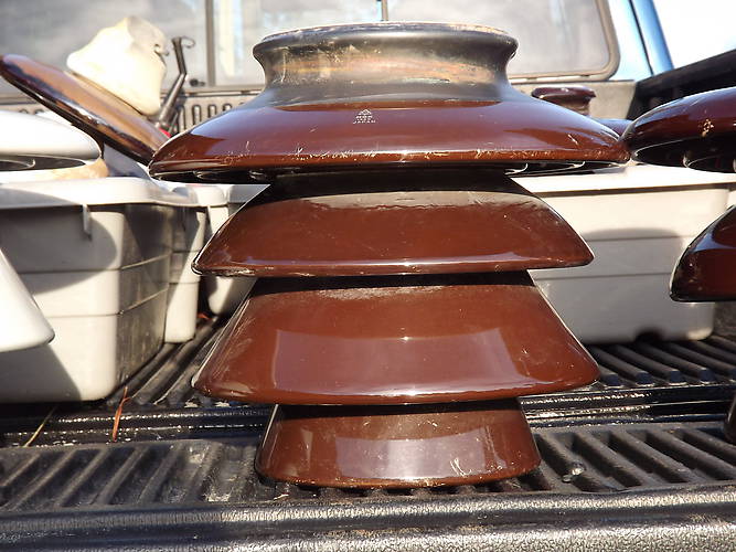 Here is a large 4 part very squatty in appearance marked NGK multi-part. Not many of these around and have only seen them used in PG&E service territory.