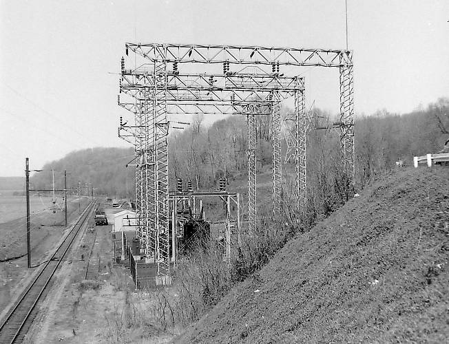Some of the freight lines were electrified back in the 1920s-30s. This sub, photographed in 1961, got taken down in the 1980s as freight dieselized. It stepped 132kv, 25hz down to 11kv for the locomotives.