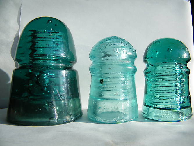 Picked these three insulators up yesterday from a friend who runs his own flea market. I admit these aren't much to write home (Icon) about. The solid dome Brookfield pony is the first I think I've ever found. The gaint sized Star beehive has a nice bubble just left and above the star. The crown embossed Brookfield is weathered. It is the third # upside down 1 over a #2 crown number I have found in my area. Going out again today on my motorcycle to see what other insulators I could be surprised to find. Chow!! |