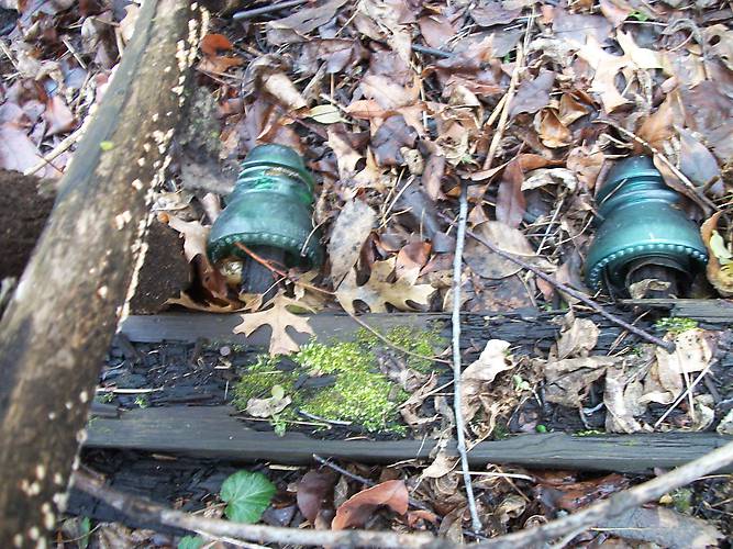 Two CD 154 insulators, One is a common aqua Hemingray 42, but the other one looks a bit different.