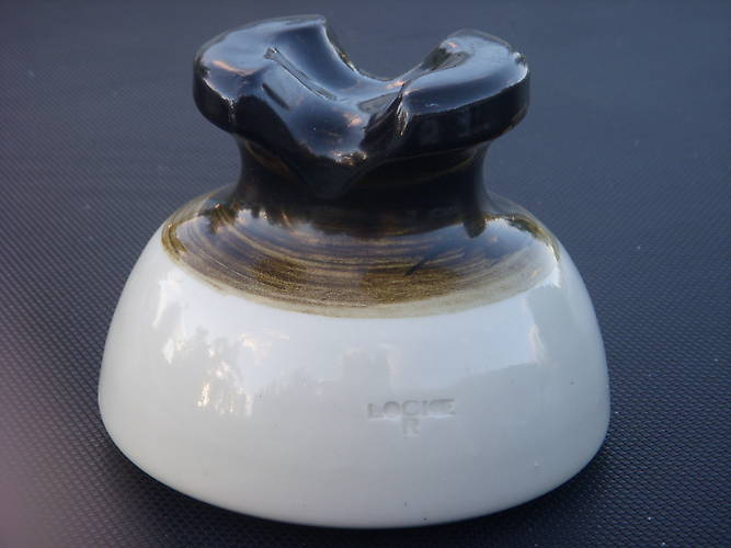 recently got this LOCKE RT for a dollar. Beautiful glaze with treated pin-hole. Still working on U number. Dimensions 5 inches wide 3 3/4 inches tall.