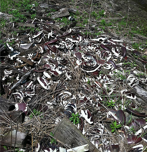 I went looking for insulators along the NS low grade line in Cordorus Furnace PA, and my heart skipped a beat when I found this horiffic scene. When the MOW removed the old catenary poles, they apparently smashed up the suspensions to remove the metal housings. I can't even imagine how many insulators were destroyed when the line was removed. If only the crew knew the history and value of them. What a shame |