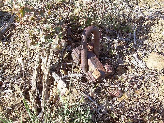 Today we went to an area we have hunted a few times before, The line leaves the road and runs up a ridge and over the mountain. I knew the only way to get their was to load the pack with water and hit it ! That's just what we did today, Out before the sun and it paid off. We have gone a long time without bringing insulators home, This is an original conductor shoe. |