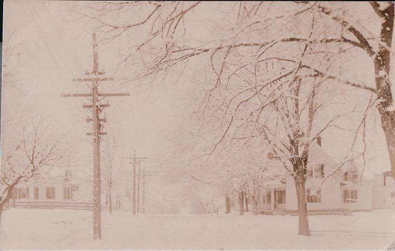 Belmont, NY c.1915 Snowy Scene, Electric Lines, Street Light