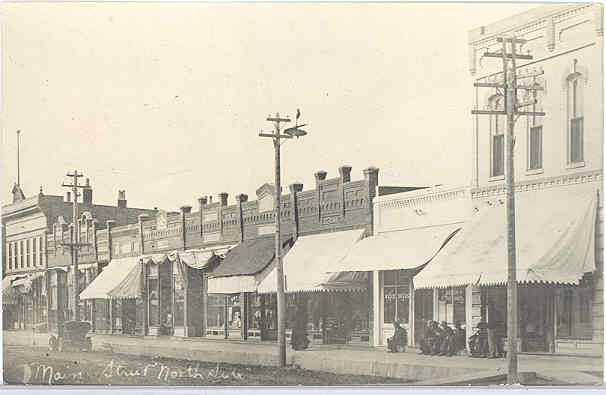 A rather primitive incandescent span-wire street light also is seen near the center of this great image.