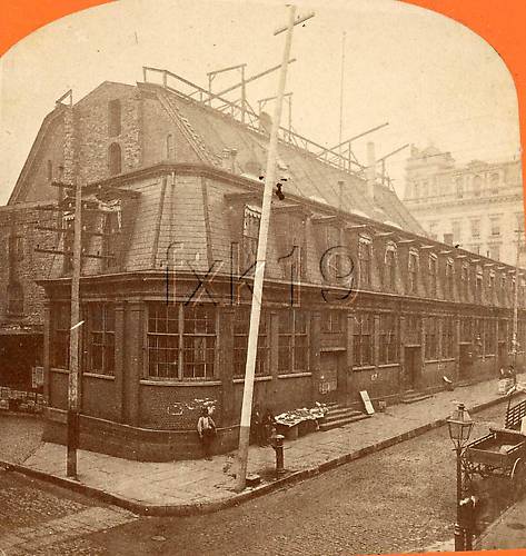 Quite possibly threaded and threadless insulators led to this New York City Post Office for rapid communication back in the 1870s. Along the roof are wooden structures that very likely carried additional telegraph wires. Click onto "Previous" for a close-up of the telegraph pole that is seen on the left to this building. A taller pole also is seen in the middle of this image. No doubt it was telegraph pole. Its physical details unfortunately are quite blurred.... |