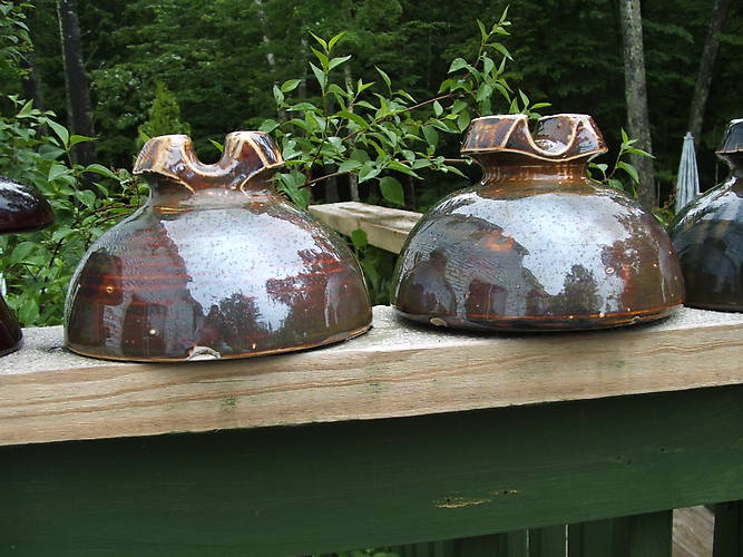 Some minor chips on these beauties, but the glaze colors where just to die for. Undetermined on the exact U# for these beast but they are no name, 7 1/8"X4 5/8". I don't see anything close to these in the book. They have 3 petticoats and the middle one (pin hole) extents past the other two. They all very in size and height. |