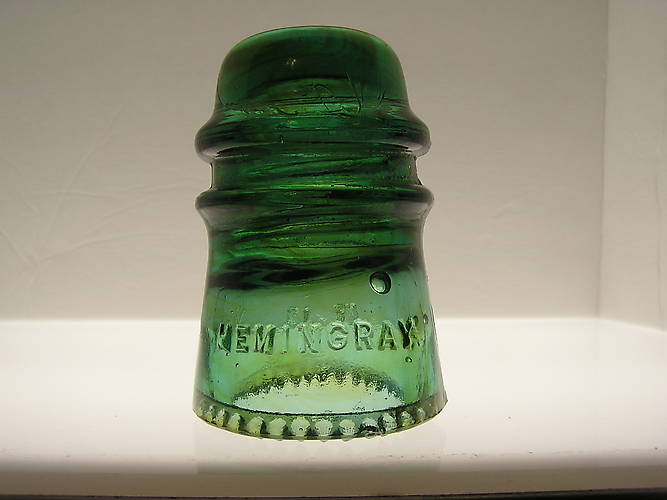 This Yellow Green toll from Hemingray has the 1 on the dome with sharp drip points. It is mint. Asking $90. plus shipping. PayPal or Postal Money Order.