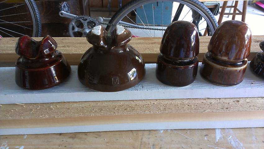 Picture 1of 2. All of the insulators are in great shape - no chips or porcelain missing. Price is $7 for each set or $14 total for both. You pay shipping.