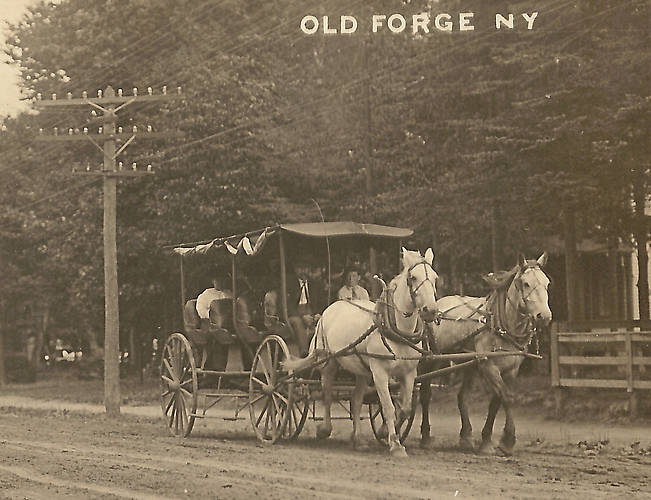 Old Forge, NY c.1910, Open wire Telephone Pole Close Up