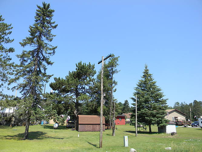Another view of the old telephone pole in downtown Boulder Junction, WI.