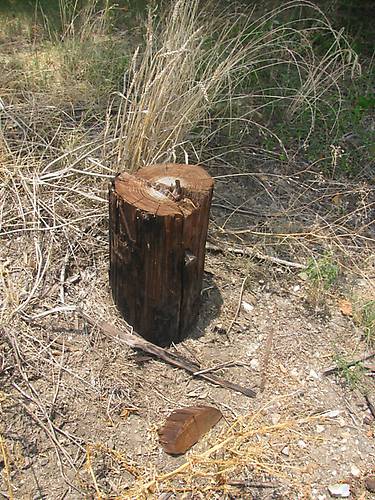 a pole stud from the yards, i remember when this pole was still up. It was a 2 cross arm pole with a ton of beehives attached to it.