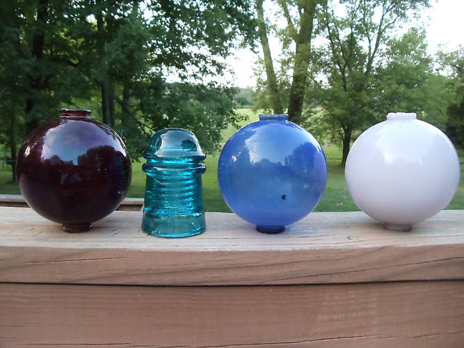 First is a flashed red K ball, then a CD 125 Pat App For in Brooks Blue, a nice blue lightning rod ball, finally a white milk glass ball.