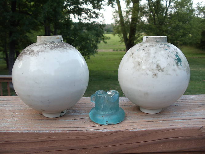 2 heavy porcelain/ceramic lightning rod balls, and a side tab